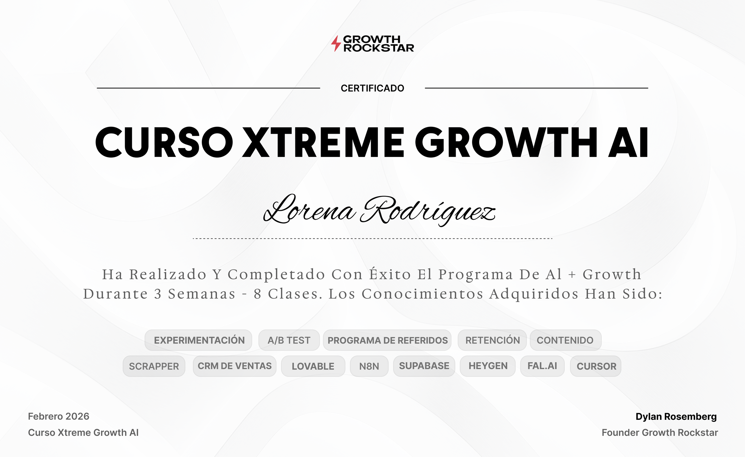 Esta página web es válida como certificado de que Lorena Rodríguez ha completado el Curso Xtreme Growth AI®