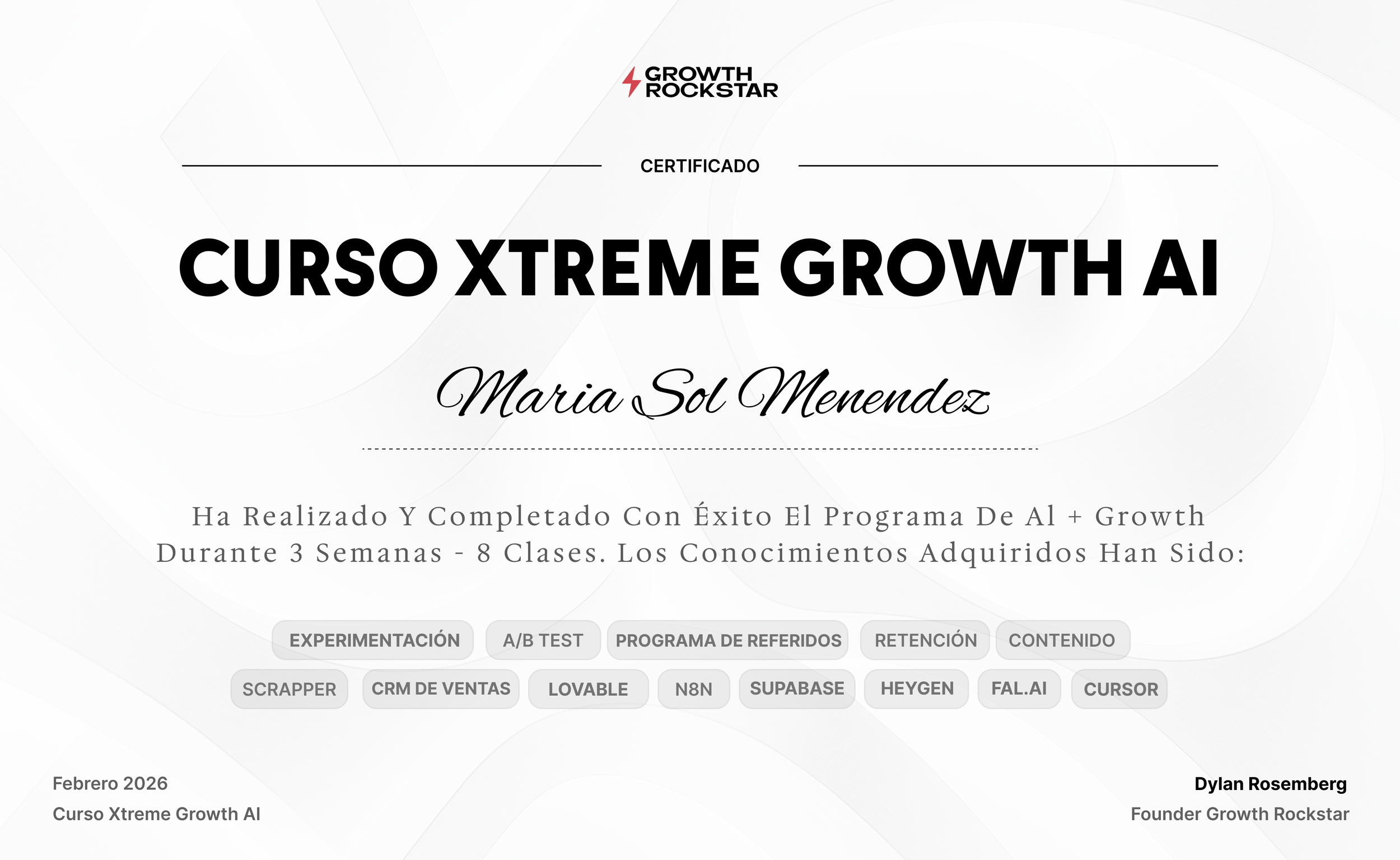 Esta página web es válida como certificado de que Maria Sol Menendezha completado el Curso Xtreme Growth AI®