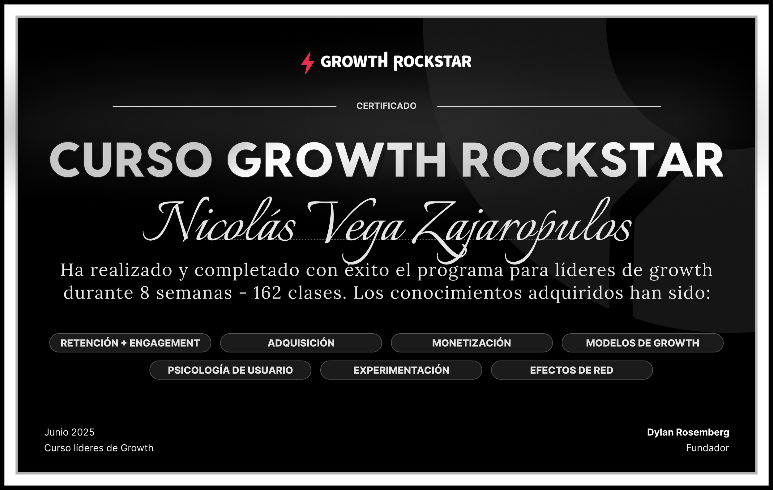 Esta página web es válida como certificado de que Nicolás Vega Zajaropulos no ha completado el Curso de Growth de Growth Rockstar®