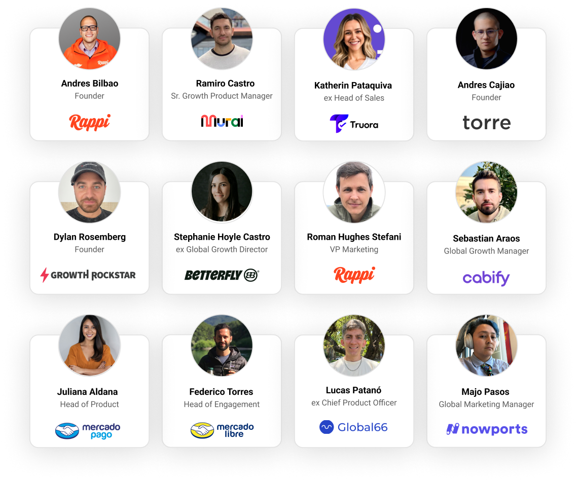 Nuestra red de mentores puede acompañarte en tu camino de growth y go-to-market.
